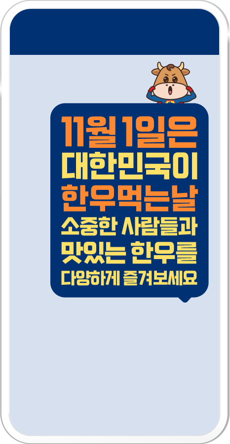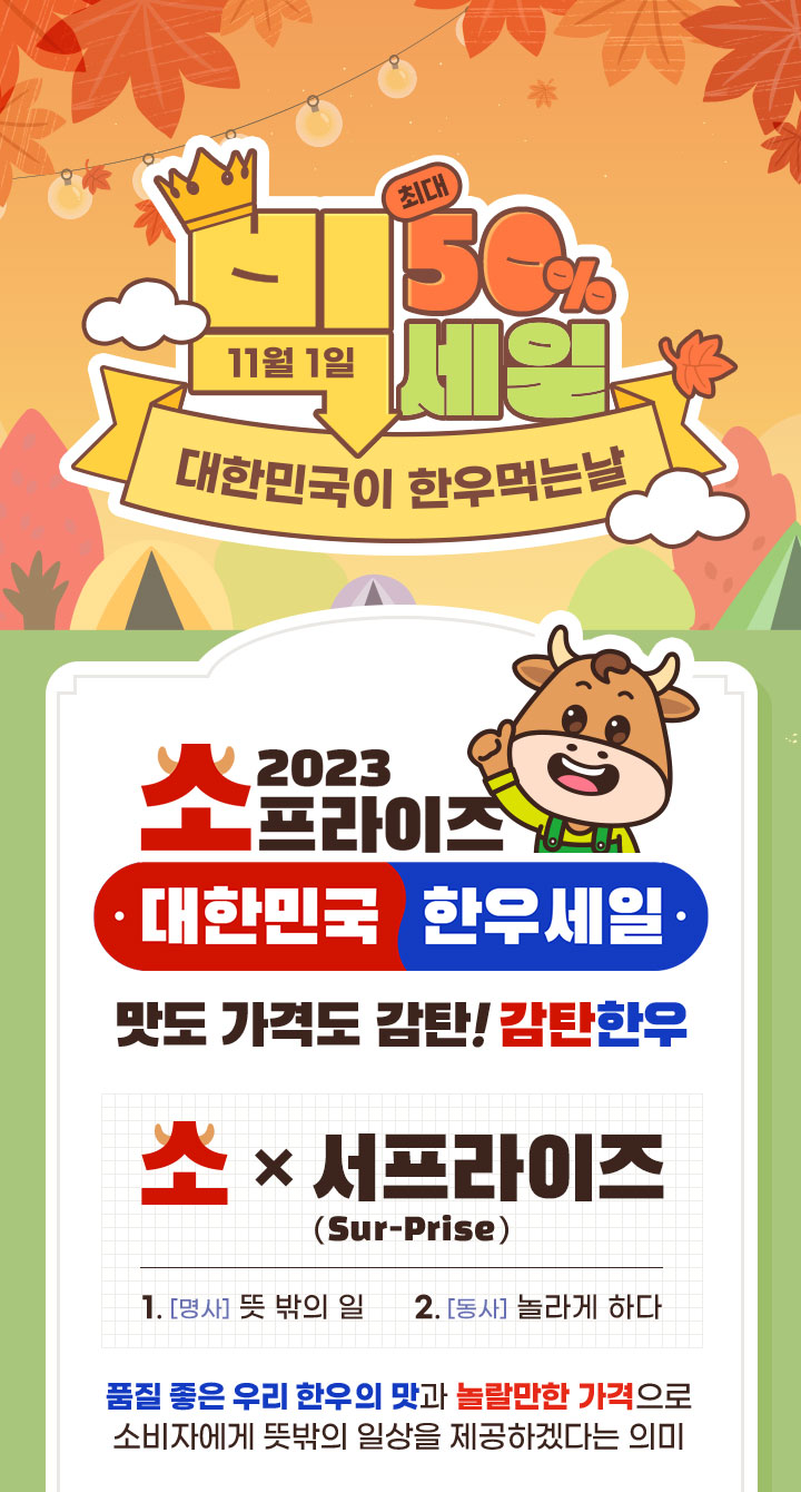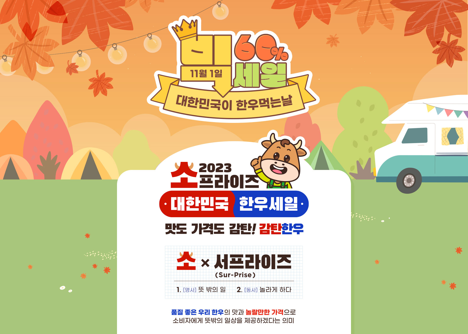 2023.10.30(월) ~ 11.3(금) 최대 60% 할인(등심, 채끝, 국거리, 불고기)